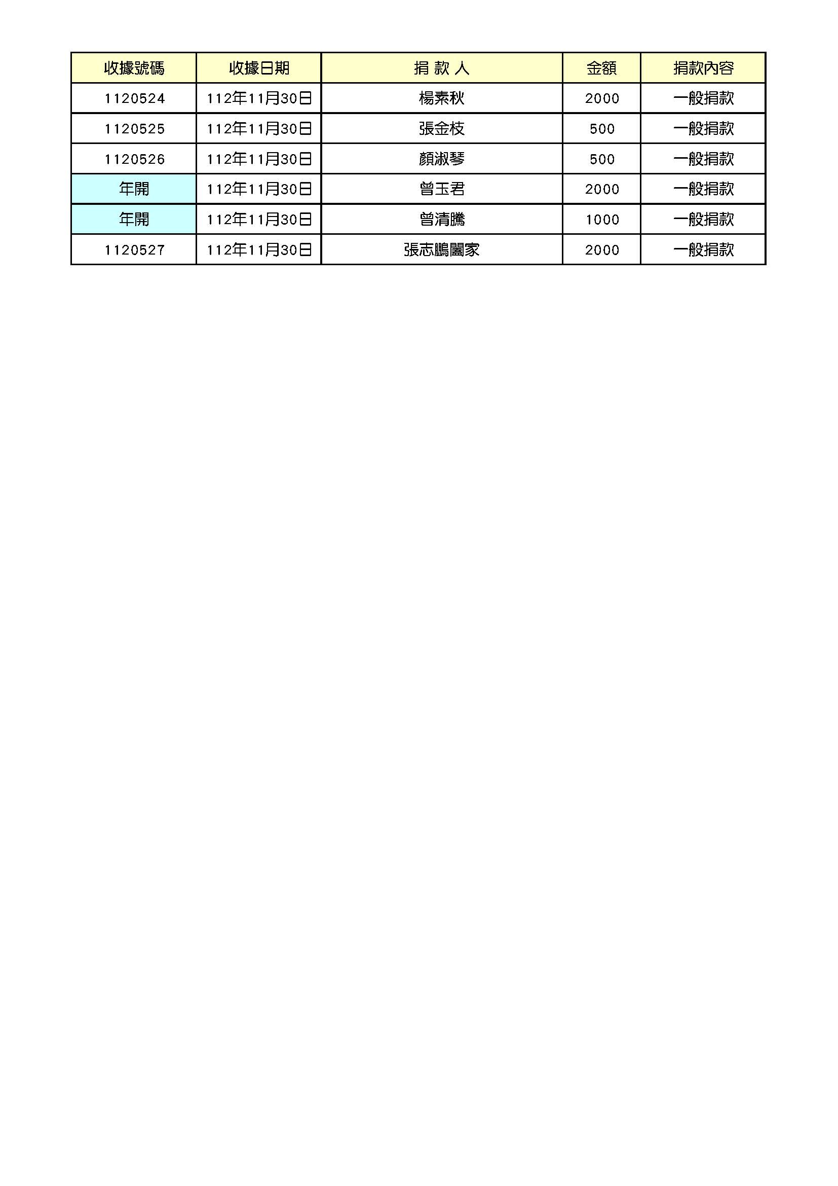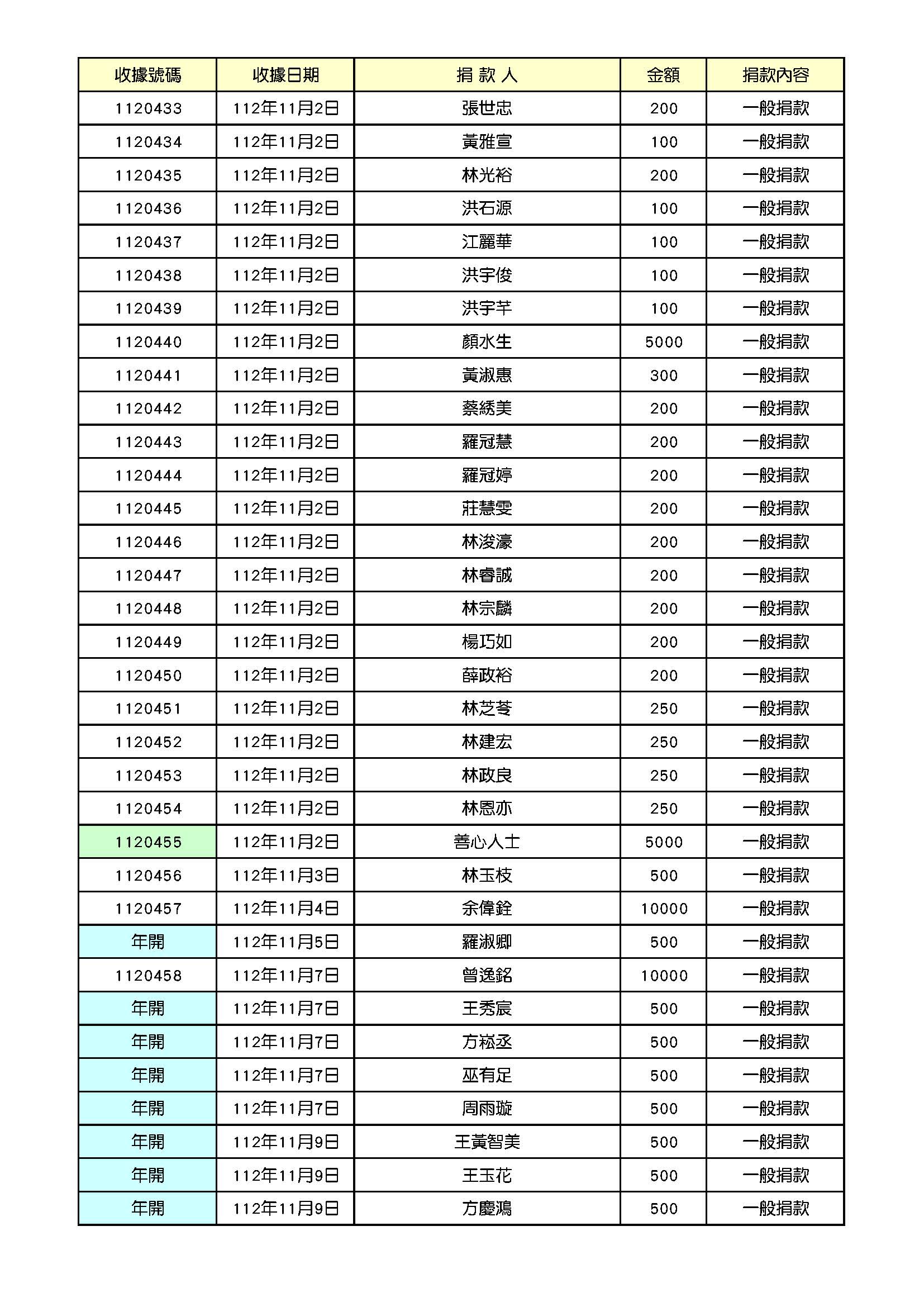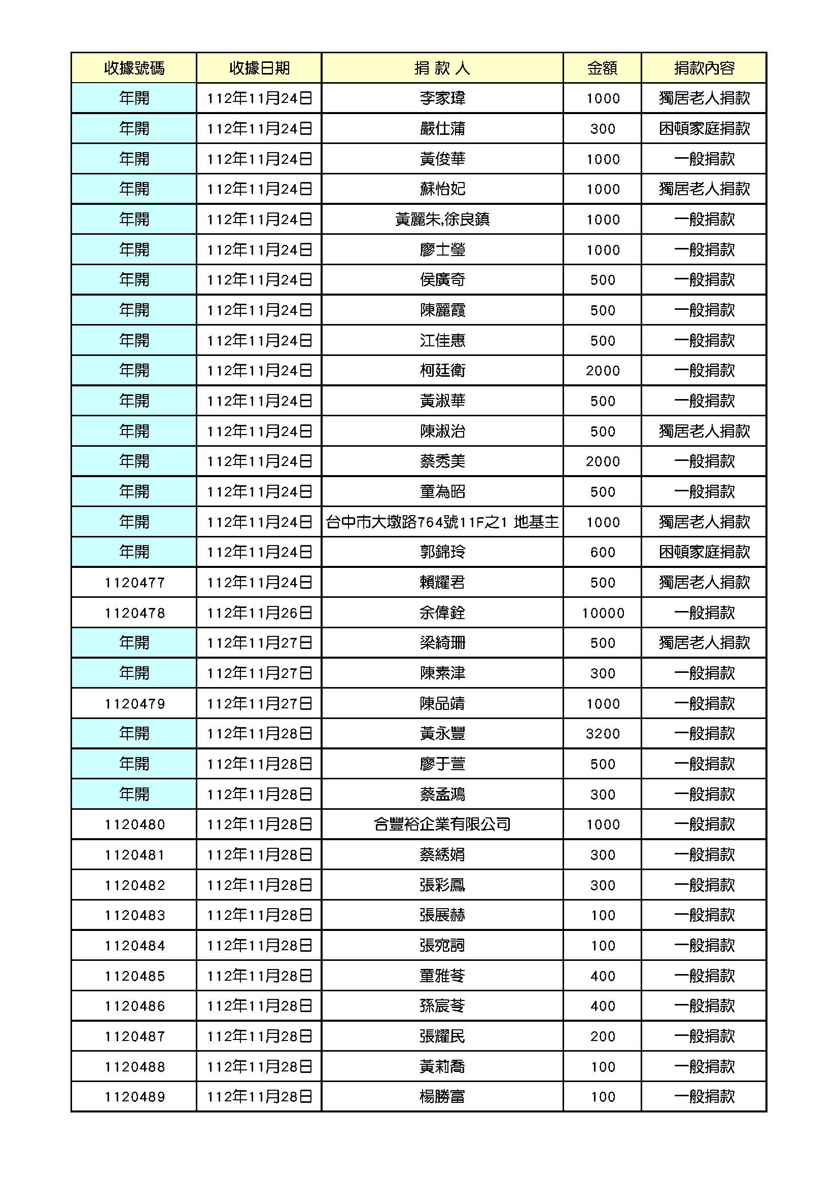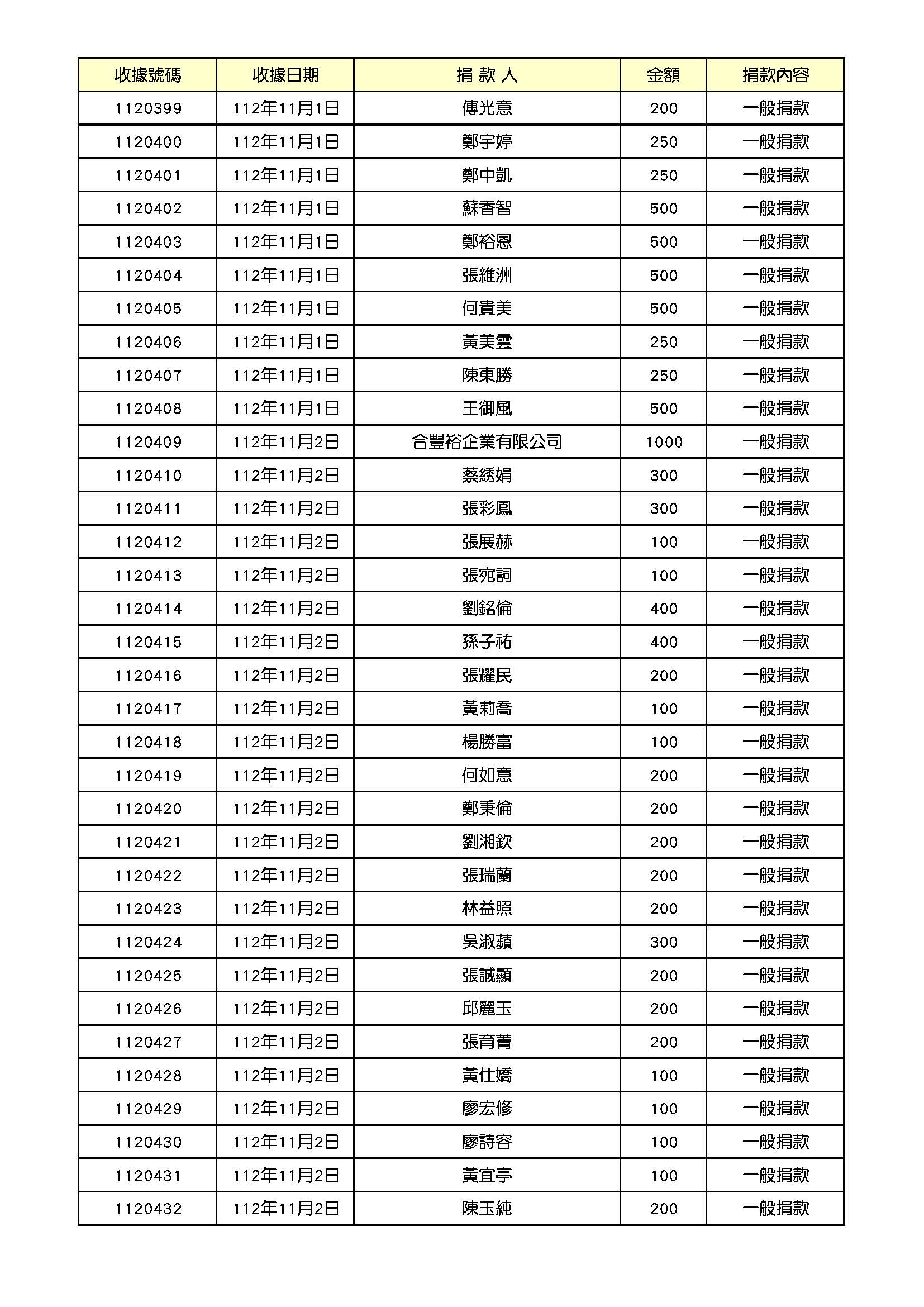 112年11月份捐款名錄