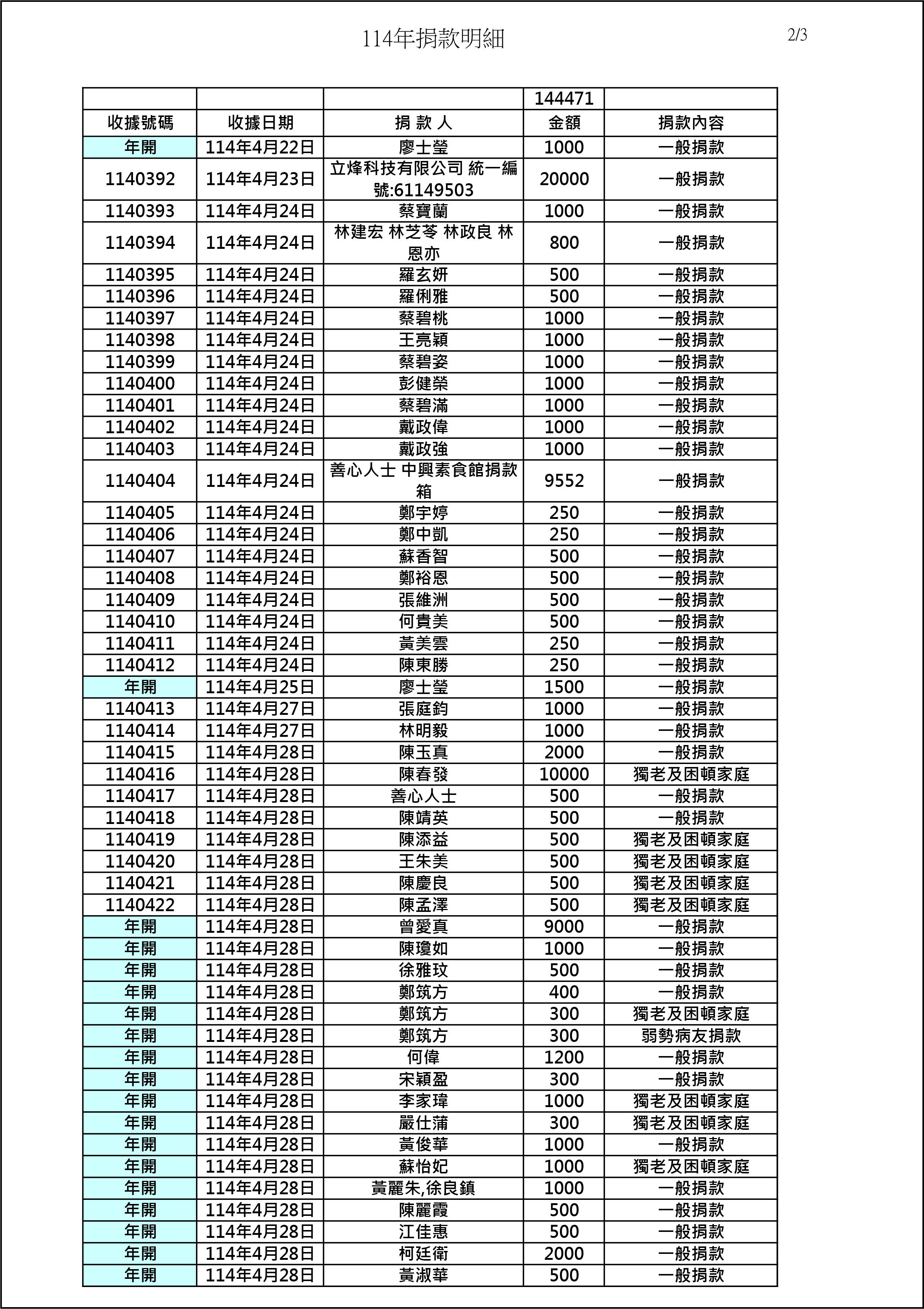 114年4月份捐款名錄