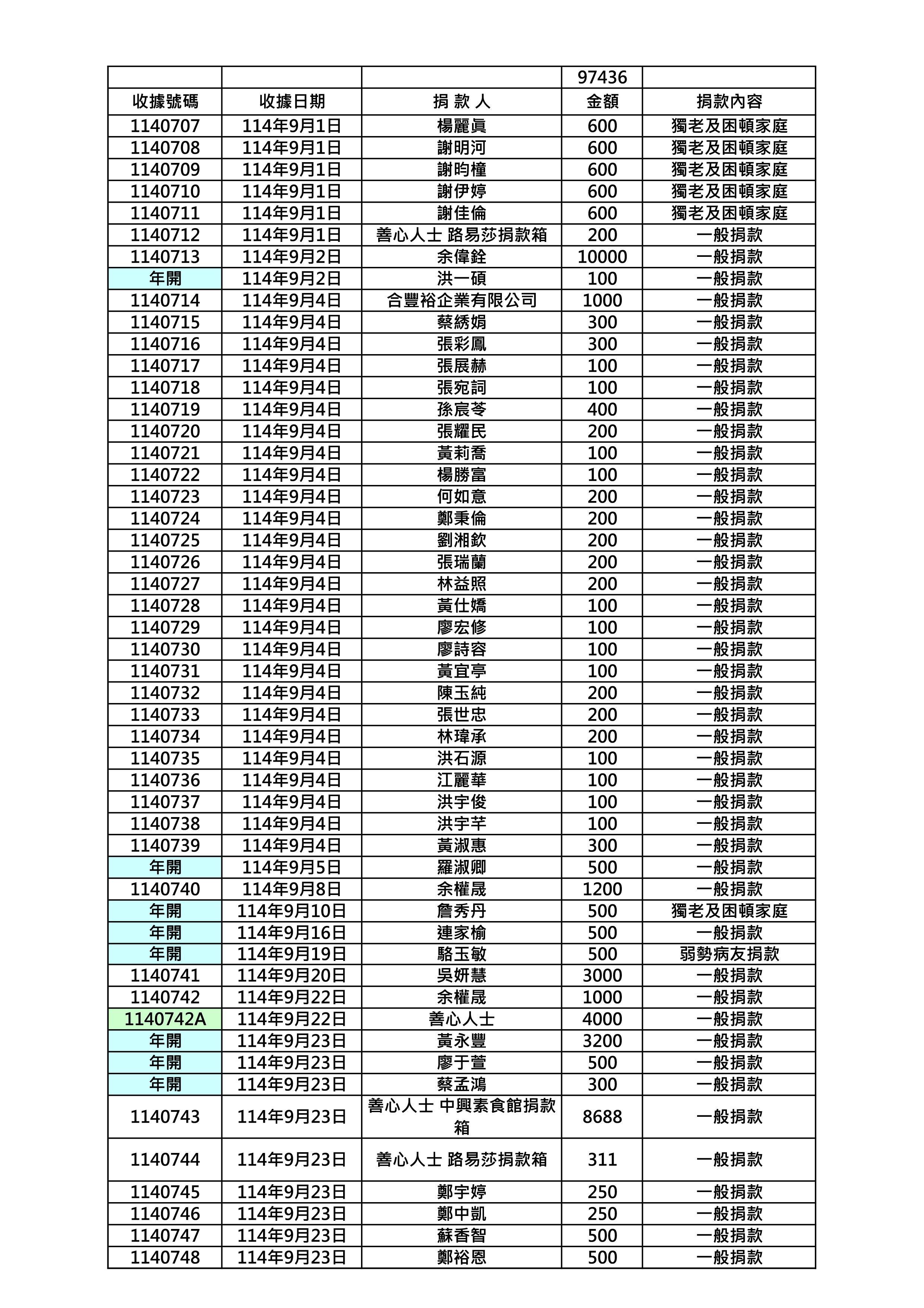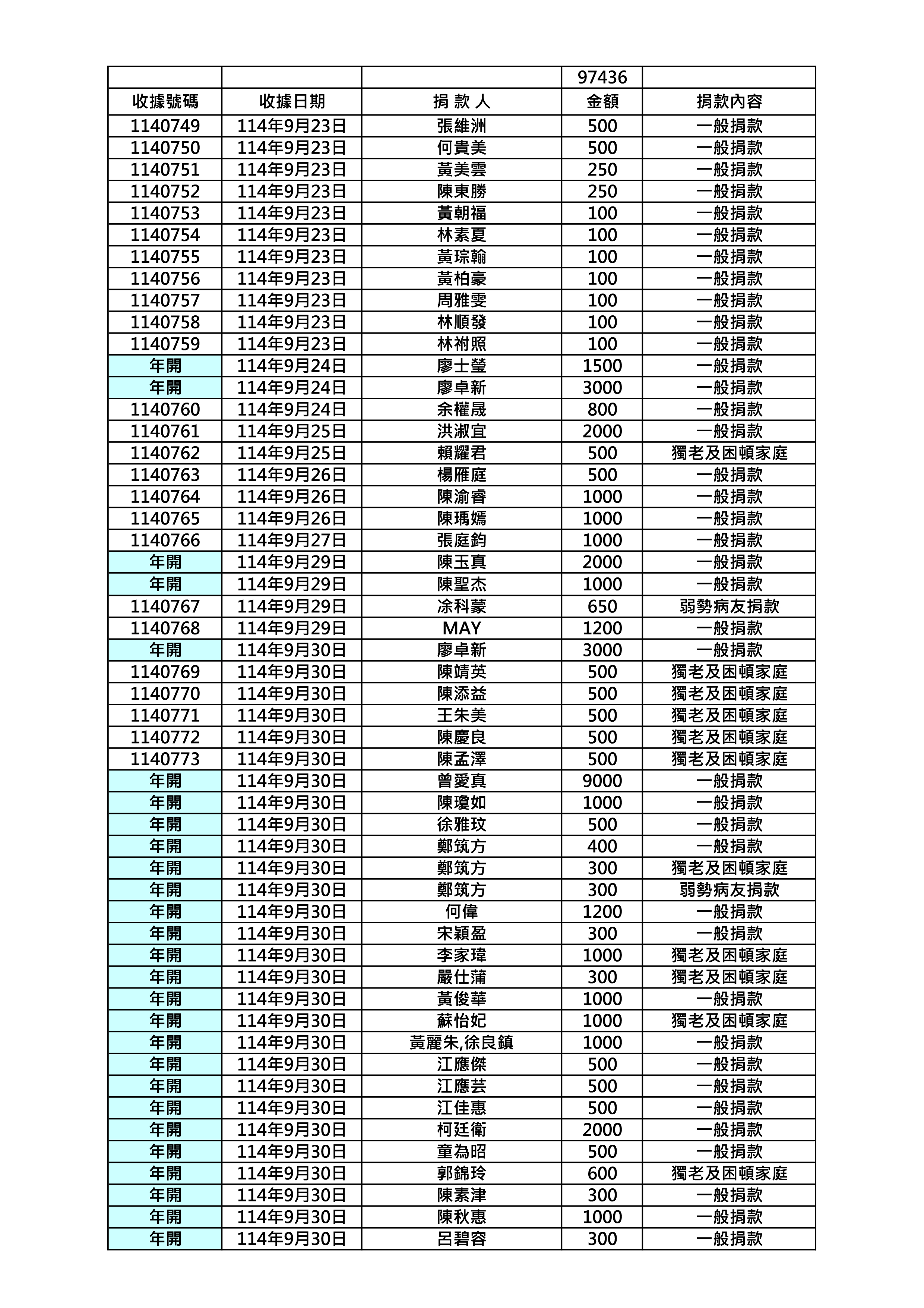 114年9月份捐款名錄