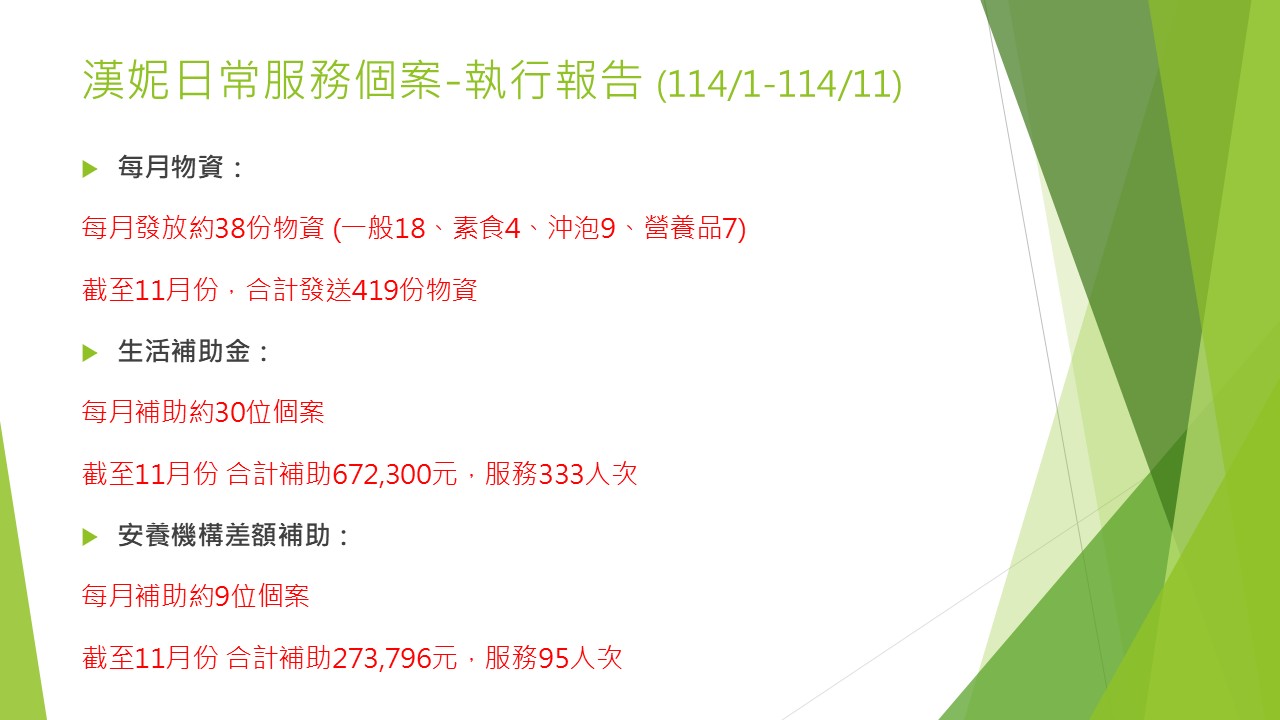 ◎漢妮日常服務個案-執行報告(114/1-114/11)